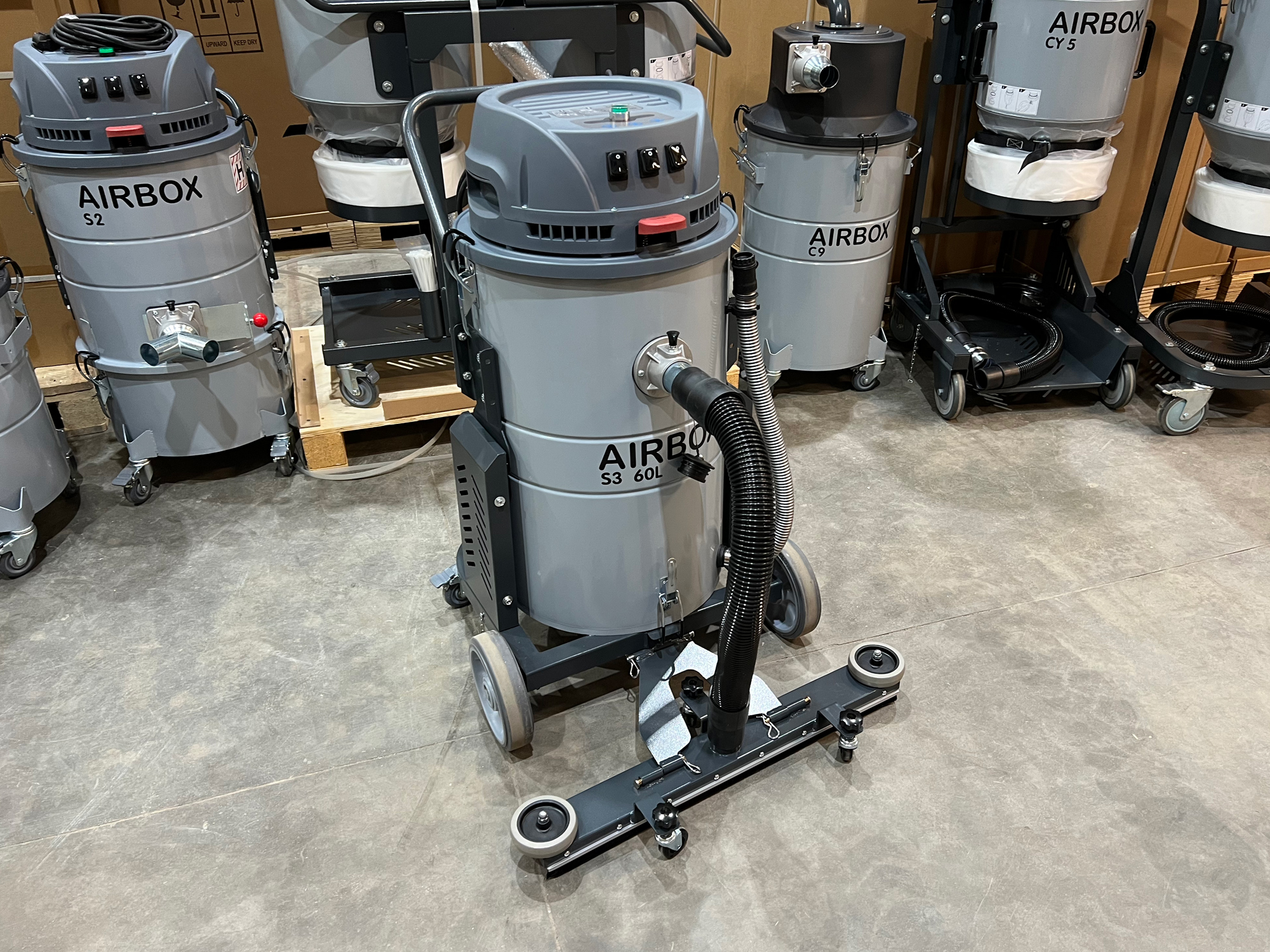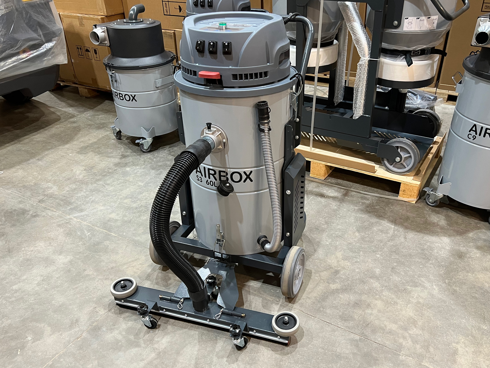 Компактный промышленный пылесос AIRBOX S3 wet and dry - имеет износостойкий металлический бак с уровнем заполнения жидкостью. Ручная система продувки фильтра с пульсирующими струями позволяет эффективно удалять мелкую пыль, обеспечивая постоянную высокую всасывающую мощность. Пылесос поставляется в комплекте с передней балкой, что позволяет его катать перед собой и собирать пыль и воду с пола.